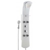 Colonne de douche hydromassante Nautilus Verre de Valentin. Pomme de tête laiton 1 jet orientable Ø200 mm. Douchette 3 jets à économie d'eau. 4 buses de massage 2 jets orientables. Système anti-calcaire. Corps en verre sécurit blanc. Mitigeur thermostatique,NF métal chromé, avec sécurité anti-brûlure. Tablette de rangement. Flexible 1,75 m finition aluminium satiné. Garantie 2 ans