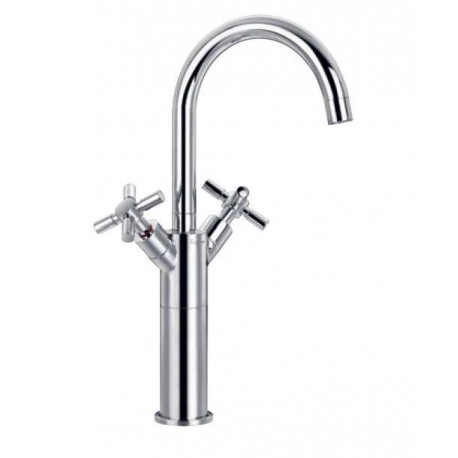 Mélangeur Lavabo Réhaussé Tubos. Robinetterie Salle de Bains Paini. Bec mobile. Sans Vidage. Têtes céramique. Hauteur totale : 356 mm. Hauteur sous mousseur : 270 mm. Saillie du bec : 150 mm. Garantie 5 ans